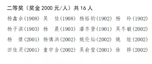 二等獎(jiǎng)學(xué)金名單如下: