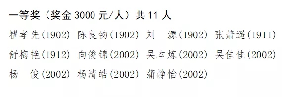 特等獎(jiǎng)學(xué)金名單如下:
