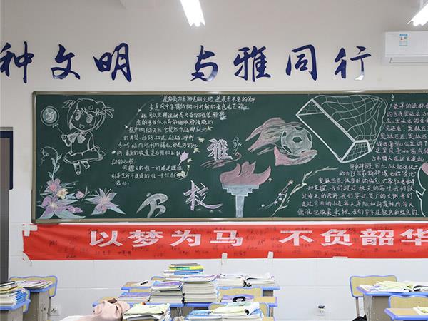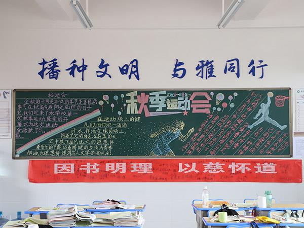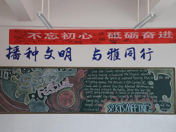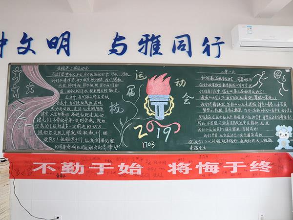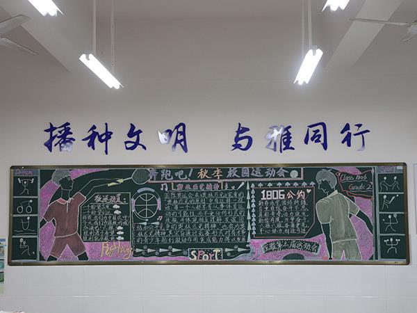 為貫徹《學(xué)校體育工作條例》,弘揚(yáng)體育精神,活躍學(xué)校體育文化生活,增進(jìn)學(xué)生、教職工身心健康,更好地展現(xiàn)恒雅師生的“精氣神”,學(xué)校舉辦了“運(yùn)動 健康 文明 快樂”為主題的第三屆校園體育節(jié)。在校辦公室、教務(wù)處、學(xué)生處、團(tuán)委精心策劃下,開展了以運(yùn)動會為主題的黑板報評比活動,一時間仿佛運(yùn)動會賽場上的一幕幕展現(xiàn)在了各班的板報上,活靈活現(xiàn)。各班同學(xué)充分發(fā)揮創(chuàng)造才能,密切配合,創(chuàng)作出了一幅幅繪畫精美、內(nèi)容充實(shí)的黑板報,令人大飽眼福!